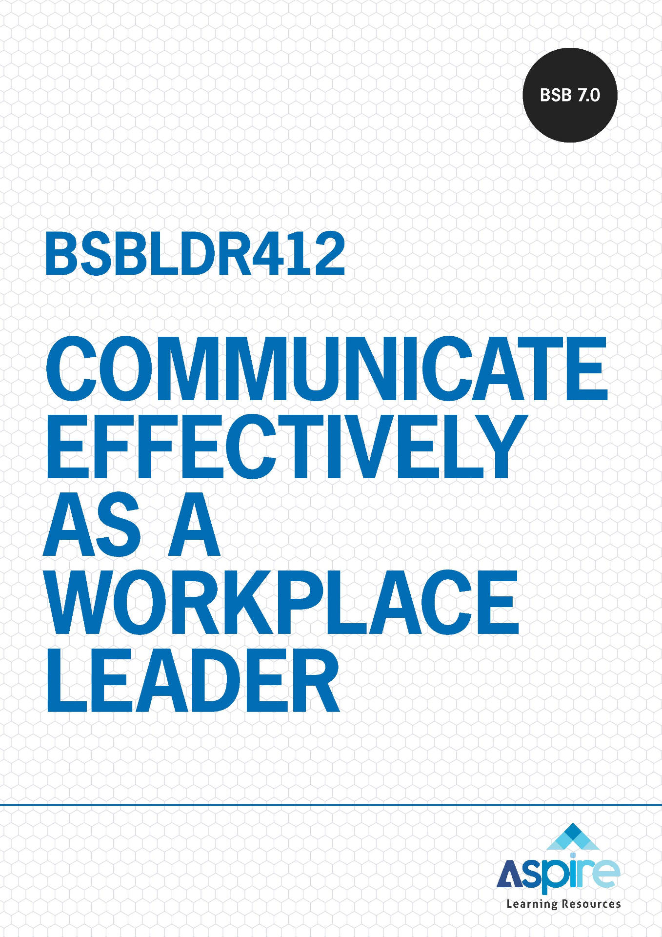 CANNOT BE PRINTED - BSBLDR412 Communicate effectively as a workplace leader eBook. This book is also available in print format - For more information please visit www.aspirelr.com.au